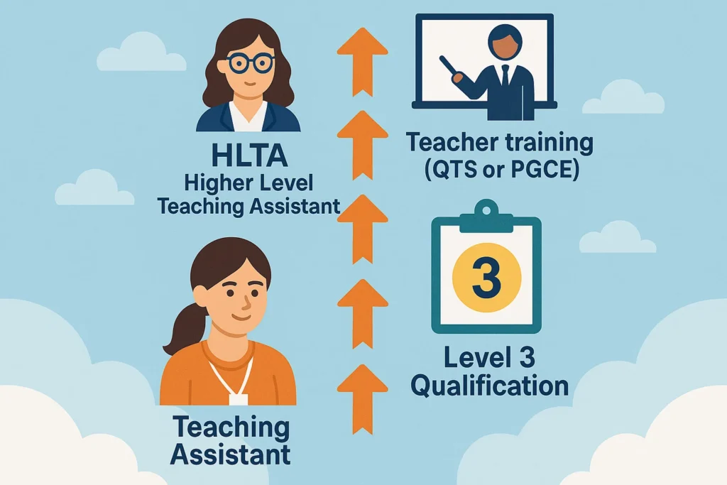 Teaching Assistant → Level 3 Qualification → HLTA (Higher Level Teaching Assistant) → Teacher training (QTS or PGCE)