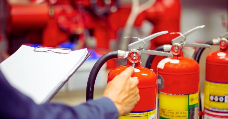 Third, they look at safety equipment visually. They check that fire extinguishers are present. They make sure nothing is blocking the extinguisher. Also, they check the “call points“. These are the red boxes you smash to sound the alarm. They must be visible to everyone. Additionally, they check that emergency lights and signs are in place.