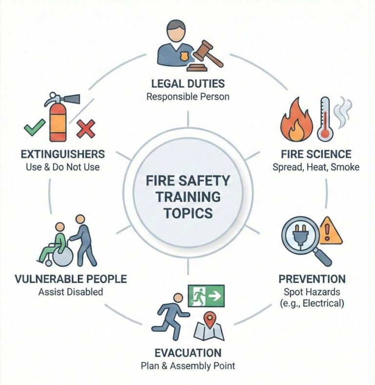We have covered a lot of information. Let’s bring the main facts back together: Fire wardens exist because fires still cause deaths and damage every year. Their job is to turn a fire plan into real action when people need help. The law doesn’t use the word “warden”, but they act as the “competent persons” that every workplace must appoint. They also need proper training so they can respond safely.